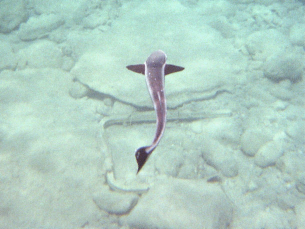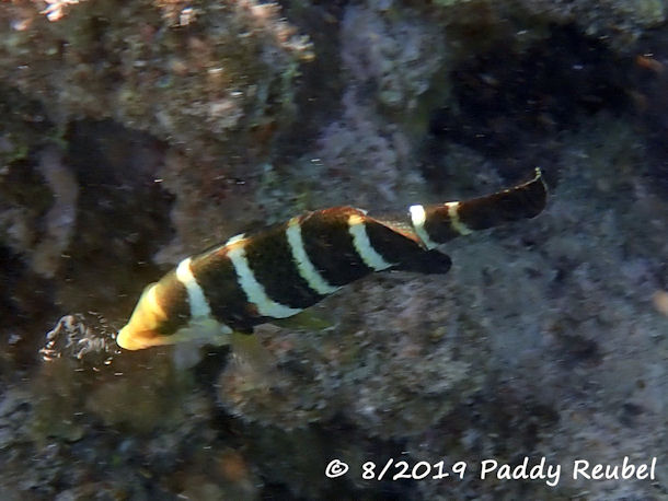 Wir sind gerade auf Bali und haben beim Schnorcheln einen Fisch entdeckt, den wir leider nicht zuordnen konnten. Aufgrund ihrer äußerste ausführlichen Homepage sind wir so frech und schicken Ihnen ein Foto des Exemplares. Vielleicht können Sie erkennen was das für ein Fisch sein könnte. Von der Form her sah es aus wie eine kleine Haiart, etwa 30 cm groß mit auffälligem weißen Streifen seitlich rings um den ganzen Fisch. Vielleicht können Sie uns weiterhelfen.