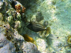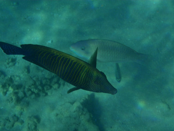 ich habe gestern beim Schnorcheln bei Lagun/Curaçao einen Fisch fotografiert, den ich bisher nicht bestimmen konnte. Leider sind die Bilder nicht besonders gut geworden, aber vielleicht könnt ihr mir trotzdem weiterhelfen.