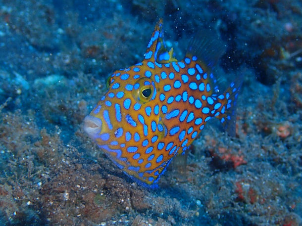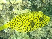 Des Weiteren strauchle ich noch mit diesem Foto, sehr markante Färbung, aber eventuell noch ein Baby? Vielleicht in Richtung Kofferfisch/Kugelfisch? Auch gesehen im indischen Ozean vor der Küsten von La Reunion.