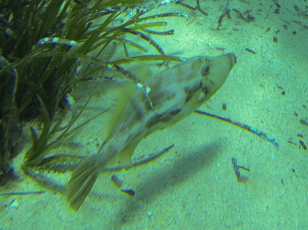 Hallo liebes easydive24-Team, im Nordosten von Kreta haben wir diesen Fisch in einer Bucht beim Schnorcheln fotografiert. Merkwürdig kam uns vor, dass er sehr neugierig auf uns zuschwamm, anstatt wie man es sonst von Fischen erwarten würde, zu fliehen oder uns nicht zu beachten.
