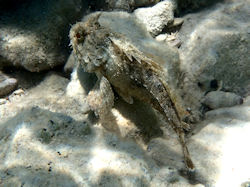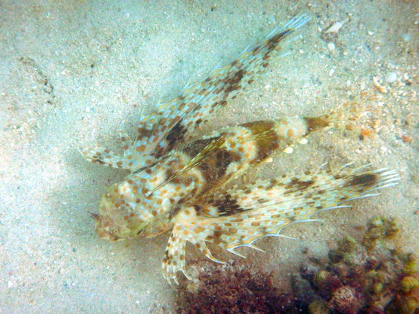 Hallo easydive24-Team! Leider finde ich auch auf Eurer tollen Seite nichts, was mir hilft, diesen Fisch eindeutig zu identifizieren. Es könnte ein Skorpionsfisch sein, aber welcher? Gesehen haben wir ihn vor Trou aux Biches/Mauritius im seichten (<2m) Wasser.