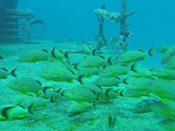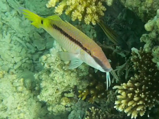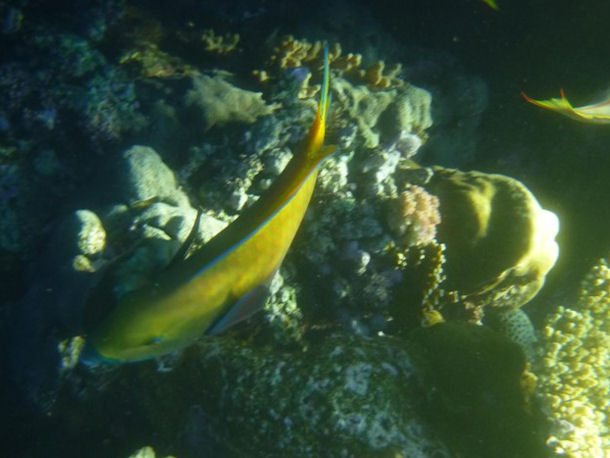 Hallo, im Zuge einer Schnorcheltour im Oktober in Hurghada mit SimSim.de sind wir bei der Sichtung eines Walhaies auch auf einen Fischschwarm gestoßen. Ich konnte bis jetzt leider nicht feststellen was das für Fische waren. Größe der Fische ca. 60-80cm, gelbe hintere Flosse, Körper schwarz-grün (fast gelblich) gestreift. Leider habe ich keine besseren Bilder, da die Fische sehr schnell waren.