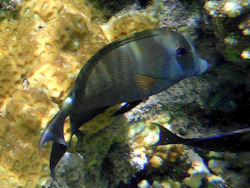 Hallo, ich schon wieder, ich bräuchte noch einmal Hilfe bei 3 Fischen die ich nirgendwo finde. Alle beim Schnorcheln fotografiert im Riff vor Reunion (indischer Ozean). Bei Ersteren vermute ich, handelt es sich um irgendeine Art von Wrasse (Lippfisch), aber ich bin mir nicht sicher. Und bei den beiden anderen könnte es sich um Jungtiere von irgendwelchen Doktorfischen (ev. sailfin tang) handeln?