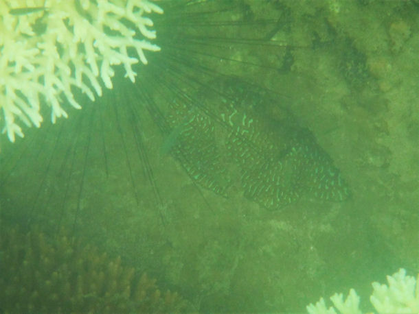 Anders sieht es jedoch bei dem Exemplar im angehängten Bild zwischen den Maskenfalterfischen aus. Das Foto wurde in Ägypten, Hurghada, Makadi Bay in ca. 2 m tiefe aufgenommen.