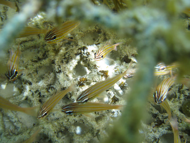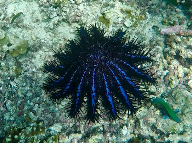 Ich habe eben auf eurer tollen Internetseite geschmökert. Wir sind aktuell auf den Seychellen auf Mahe und haben noch zwei Bilder, einmal Seeigel und einmal ein kleiner Schwarmfisch den wir nicht identifizieren können. Vielleicht könnt ihr uns helfen?