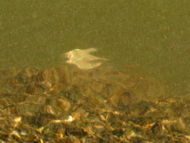 war ca. 0,4-0,5 m lang, in ca. 2-3m Tiefe, ca 15m vom Ufer entfernt im Übergangsbereich Felsen/Sand