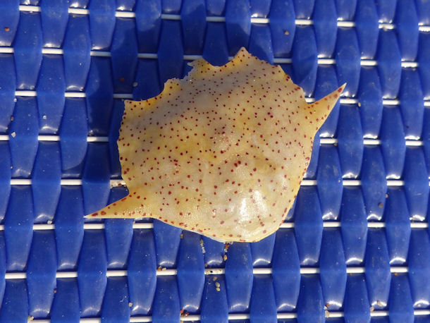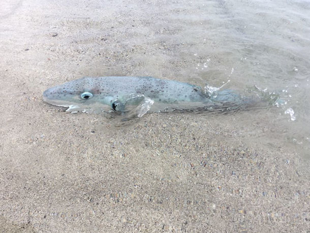 Wir waren Ende Oktober im Oman; diesen Fisch fanden wir noch lebend an einem Strand zwischen Sur und Duqm, südlich vo Muscat. Wir haben ihn zurück ins Wasser gebracht. Das Maul hatte er unten. Die Haut fühlte sich an wie ein kostbarer Stoff.