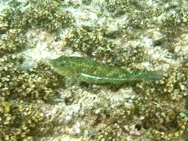 Ich habe noch ein Exemplar fotografiert wo ich mir nicht sicher bin..evtl. ein Art Drachachenkopf? Das einzige was sich an dem Fisch bewegt hat, war das Maul. Ansonsten lag er einfach nur da und ließ sich durch nichts und niemanden stören. Er lag zwischen Steinen und Muscheln und fiel mir nur durch die rosa Schwanzflosse auf.