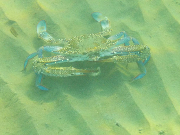 Hallo, erstmal vielen vielen Dank für die viele Arbeit, die in der Seite steckt. Es ist total faszinierend, wieviele Arten im Mittelmeer leben. Wir wohnen in Larnaca, Zypern, und sind seit kurzem aufs Schnorcheln gekommen. Wir hätten nie gedacht, dass so viele verschiedene Arten hier an unserem doch sehr belebten Strand (McKenzie) los ist. Heute haben wir diese Krabbe gesehen, und ich bin mir echt nicht sicher, welche Art das ist. Es waren viele Menschen im Wasser, und mittendrin diese Krabbe. Vielleicht könnt ihr uns bei der Identifizierung helfen.