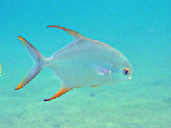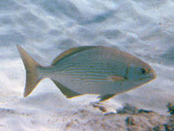Dieses schöne Paar habe ich letztes Jahr im Oktober an der türkischen Mittelmeerküste aufgenommen - genauer gesagt vor Avsallar ca. 25km vor Alanya. Die Fische waren ca 20cm lang und ca 12-15cm hoch. Die Rücken- und Bauchflossen sind ziemlich auffallend... Ca. 30-40cm lang und einzeln - kann man gut auf einigen Fotos erkennen. Farbe war beige hell gestreift.