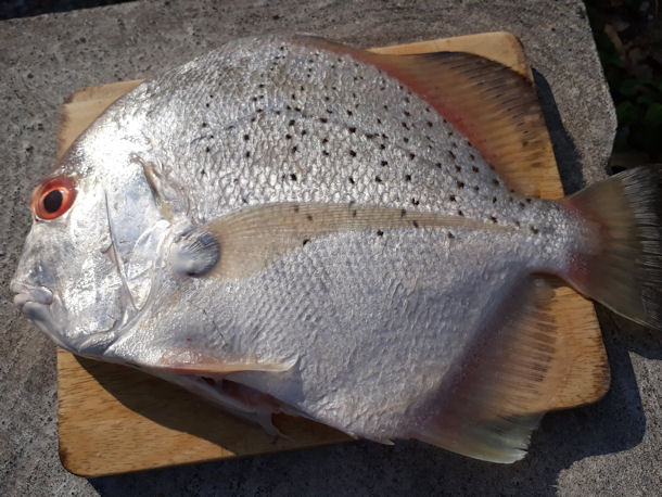 Hallo, wir haben hier Fotos von einem ca. 20 cm langen Fisch mit flachem Schwanz, bei dem wir nicht wissen, um welchen es sich handelt. Vielleicht kann jemand helfen.
