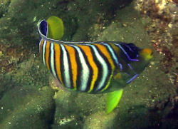 Nun, auch diesen kann ich nicht zuordnen, auch wenn der Körper nach einem Doktorfisch aussieht. Nur diese Streifen finde ich nirgendwo beschrieben.