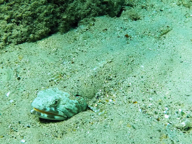 Sandtaucher-Eidechsenfisch (D), Sand diver, Lizardfish (E) |