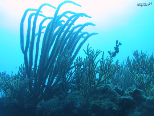 Die große ist eine Pseudoplexaura sp. So wie es aussieht sp. porosa Die kleinen drum herum Muricea sp. vermutlich sp. laxa