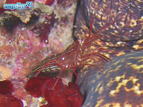 Die Borstenschwanz-Putzergarnele (Lysmata seticaudata) ist eine Garnelenart, die im Mittelmeer vorkommt. Wie der Name Putzergarnele schon vermuten lässt befreit sie Fische von Parasiten und abgestorbenen Hautresten. Bei besonders großen Fischen wie Muränen kriechen Sie sogar in das geöffnete Maul, um Nahrungsreste zwischen den Zähnen zu entfernen (siehe Foto).