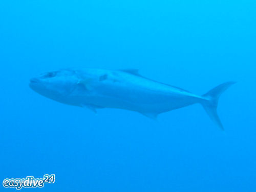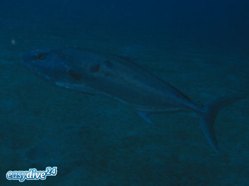 Die Große Bernsteinmakrele (Seriola dumerili) ist die häufigste Stachelmakrele im Mittelmeer. Haupterkennungsmerkmal ist ein dunkler, schräger Streifen, der vom hinteren Kopfbereich über das Auge zum Maul führt.