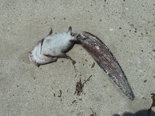 wir haben hier Fotos von einem ca. 20 cm langen Fisch mit flachem Schwanz, bei dem wir nicht wissen, um welchen es sich handelt. Vielleicht kann jemand helfen.