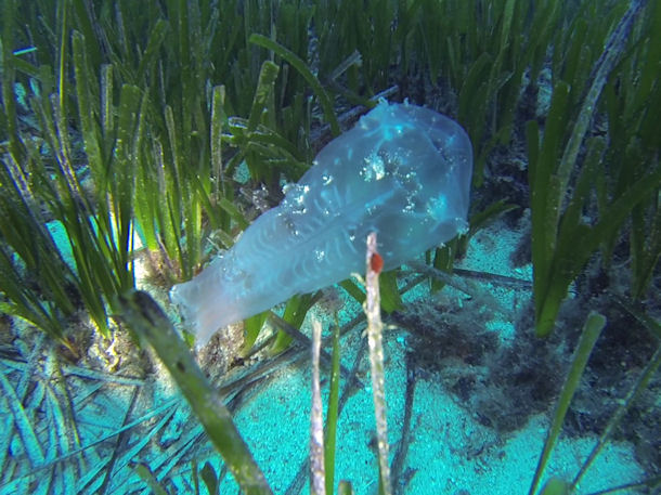 war heute um ibiza tauchen auf ca 20 m und filmte da dieses Lebewesen, habe leider nichts auf internet gefunden was vergleichbar wäre, auch habe ich diese saecke an den posidonias gefilmt wo ich denke das es sich um Fischeier handelt, wuerde mich sehr über eine information von Ihnen freuen ,