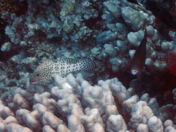 Die genaue Art kann ich leider aufgrund der Position des Fisches nicht bestimmen, ich tippe auf Ephinephelus tauvina oder Epheniephelus longispinis.