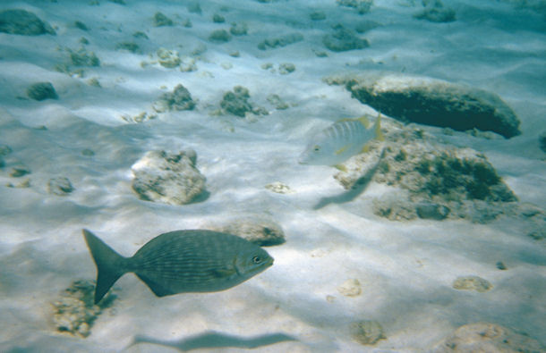 Bild 1 und 016 3 gleiche Gattungen, aber unterschiedliche Arten. Auf dem ersten Bild ist ein Bermuda-Ruderfisch (Kyphosus sectator) zu sehen, auch dem anderen ein Karibischer Ruderfisch (Kyphosus incisor).