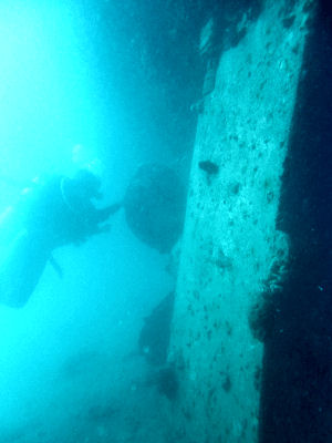 Die Oberkante der erhaltenen Aufbauten liegt in nur 3 Metern Tiefe. Das Wrack wird vom einem großen Schwarm Barrakudas bewacht. Wie Dutzende silbriger Nadeln umkreisen sie das Wrack und schwimmen durch die oberen Aufbauten.