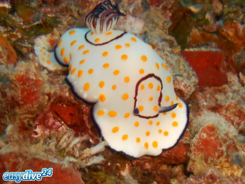 Während sich auf dem Sandboden zahlreiche Blaupunktrochen verstecken, bevölkern den Rumpf eine Vielzahl farbenprächtiger Nacktschnecken. Die Arten wechseln alle Monate, sind aber immer recht zahlreich. Man kann hier schöne Exemplare wie die gelbgefleckten Prachtsternschnecken Risbecia pulchella und Goniobranchus annulatus beobachten, die sich auf dem ersten Blick sehr ähneln. Doch während die Grundfärbung der G. annulatus komplett weiß ist, besitzt die R. pulchella ein Muster aus 'verschmierten' lila Flecken und Linien. Weiterhin fehlt ihr der charakteristische purpurrote Ring um die Kiemen und Fühlerpaare der G. annulatus.