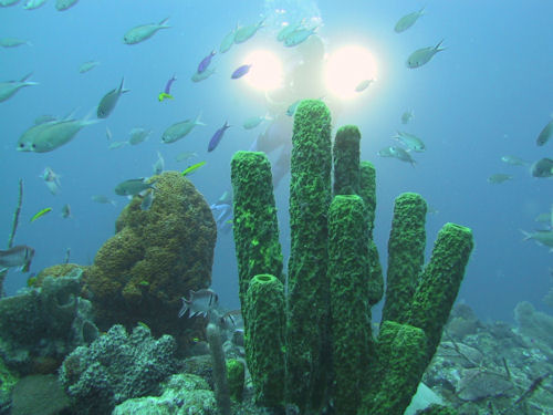 An dem 22 m tiefen Tauchplatz traf ich auch die karibiktypischen Doktor-, Koffer-, Flöten- und Papageifische sowie zwei stattliche Barrakudas. Auf den Gorgonienfächern sah ich häufig Flamingozungen. Die kleinen Nacktschnecken haben eine Vorliebe für die Gorgonien Plexaura homomalla und Gorgonia ventalina. In den Riffspalten sah ich auch Langusten und Gefleckte Muränen.