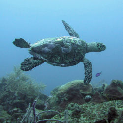 Den zweiten Tauchgang unternahm ich am Dottins Reef. Der Tauchplatz befindet sich vor Sandy Lane Beach an der Westküste der Insel. Der Tauchplatz gehört zu den beliebtesten Tauchgründen von Barbados. Die Riffoberkante befindet sich auf ca. 12 m und fällt bis auf 30 m ab. Auch hier traf ich wieder auf zwei Karettschildkröten. Ansonsten gab es den typischen Fischreichtum: Kaiserfische, Feilenfische, Kofferfische...