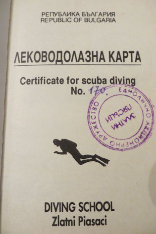 Bulgarien wird für mich immer eng mit dem Tauchen verbunden sein. Hier am Goldstrand bei Varna hatte ich im Jahre 1994 meinen Tauchschein erworben. In meinen Aufzeichnungen fand ich folgende Notiz: