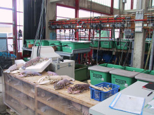 Die Untersuchungen in den Gewässern rund um Helgoland werden durch Experimente und Zuchtversuche in den Laboratorien der Biologischen Anstalt Helgoland ergänzt. Ein Arbeitsschwerpunkt sind Laborversuche zur Zucht und Lebensweise des bis zu 1 m langen Europäischen Hummers und der Taschenkrebse. Letztere habe ich dann nicht nur in den heiligen Hallen des Forschungsinstituts sehen können, sondern auch beim Schnorcheln im Meer und abends garniert mit einem Stück Petersilie auf meinem Teller.
