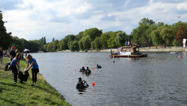 Regelmäßig beräumen die Adlershofer Taucher Berliner Gewässer über und unter Wasser vom Müll. Für das Umweltengagement wurde der Tauchsportklub Adlershof im ProSport 24 e.V. bereits mit dem Stern des Sports und Umweltpreis des Berliner Sports geehrt. Diesmal war es die erste gemeinsame Aktion mit dem NABU. Die Aktion war ein voller Erfolg.
