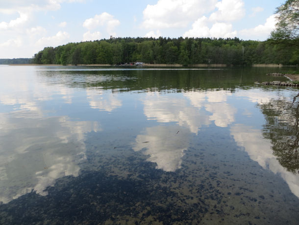 Ein weiterer schöner Klarwassersee des Naturparks Stechlin-Ruppiner Land ist der Roofensee (slawisch Rov = Graben). Wie der Name schon sagt, handelt es sich um einen langengestreckten Rinnensee, dessen Ufer steil abfällt. Die Maximaltiefe beträgt 19 m. Der See befindet sich etwa 10 km von Rheinsberg entfernt. Am besten erreicht man ihn über das kleine Städtchen Menz. Hier am Südufer befindet sich eine Badestelle, die als Einstieg genutzt werden kann. Spannend ist insbesondere der Bereich vor der Schilfzone. Hier kann man auf interessante Zeugnisse aus der Vergangenheit stoßen.