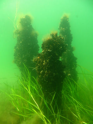 (Pholis gunnellus) und Aalmuttern (Zoarces viviparus) verstecken. Mit etwas Glück trifft man hier in der Dämmerung auch Dorsche (Gadus morhua). Insbesondere bei Dämmerungs- und Nachttauchgängen empfiehlt sich direkt unter der Seebrücke zu tauchen, da auf der Seebrücke häufig Angler stehen.