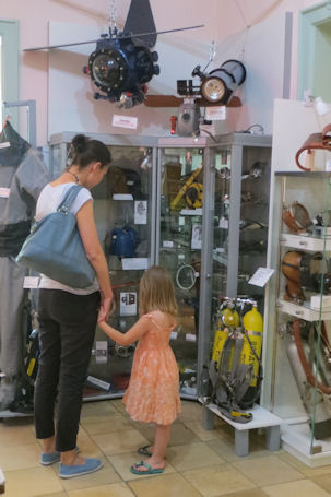 Zu den besonderen Ausstellungsstücken gehören auch historische Tauchutensilien, die ein gewisser Franz Cech aus Wien in den Jahren 1945 – 1952 für die Expeditionen des österreichischen Meeresforschers Prof. Dr. Rupert Riedl entworfen und hergestellt hatte. Prof. Riedl war Leiter der ersten österreichischen Nachkriegsexpedition „Unterwasser-Expedition Austria“. Bekannt sind seine Unterwasserfilme „Das Leben im Riff“ (1951) und „Lichter unter Wasser“ (1952).