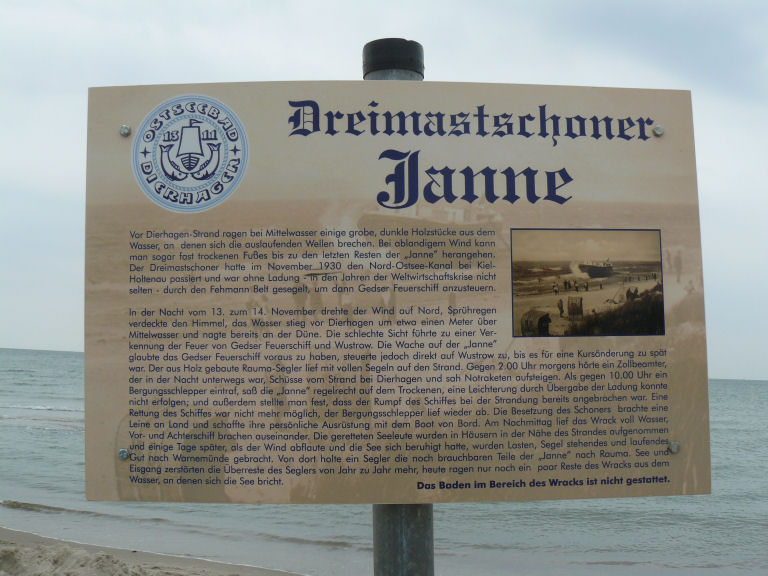 Häufig entdeckt man beim Strandspaziergang an der Ostsee Wrackteile, die an den Strand gespült oder unter Wasser beim Schnorcheln und Tauchen im Flachwasserbereich Spanten, die aus dem San ragen. Es handelt sich um Überreste von Schiffen, die hier in Küstennähe verunglückt sind. Bei der Mehrzahl der Schiffsunglücke handelte es sich um Schiffsstrandungen. Das bekannteste Wrack der Region Fischland-Darß-Zingst ist das des finnischen Dreimastschoners „Janne“ vor Dierhagen.