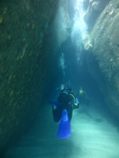 Ein weiterer Tauchplatz Kretas ist die Panormos-Cave. Große Fischbestände sucht man zwar vergebens, doch bezaubert die schöne Unterwasserlandschaft. Die felsige Landschaft setzt sich unter Wasser fort. Besonderer Höhepunkt dieses Tauchplatzes ist eine große Grotte. Man kann sehr weit in die Grotte hinein tauchen, sollte aber eine Lampe mitnehmen. Die Grotte ist sehr geräumig und kann daher auch von weniger erfahrenen Tauchern betaucht werden.