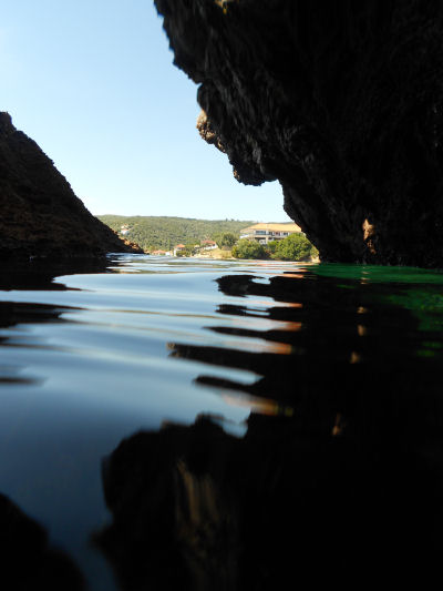 Ein weiterer interessanter Tauchplatz ist in nur wenigen Bootsminuten von der Basis aus zu erreichen - die Twin Caves, die Zwillingshöhlen. Im eigentlichen Sinne handelt es sich hier nicht um Höhlen, sondern um Grotten, da man jederzeit direkten Sichtkontakt zum Ausgang und zur Sonne hat. Aus dem Freiwasser kommend taucht man in zwei kurze Höhlen ein, die nicht mehr als 40 bis 50 m tief sind und innerhalb der direkten Sonnenlichtzone liegen. Die eine Höhle befindet sich in einer Tiefe von 20 m und ist mit einer Vielzahl farbenfroher Schwämme und Röhrenwürmer bedeckt, die andere Höhle liegt direkt an der Oberfläche und führt in eine Tiefe von 5 m.