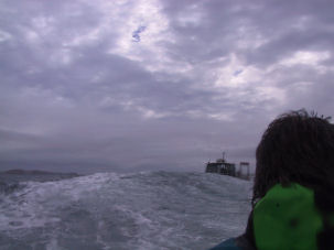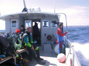 Mein erster Tauchgang führte uns bei rauer See zum Wrack der „Kowloon Bridge“. Es handelt sich um das zweitgrößte Wrack in europäischen Gewässern überhaupt. Das über 280 m lange und 45 m breite Schiff ist am 22. November 1986 mit 160.000 t Eisenerz südöstlich von Tragumna gesunken.