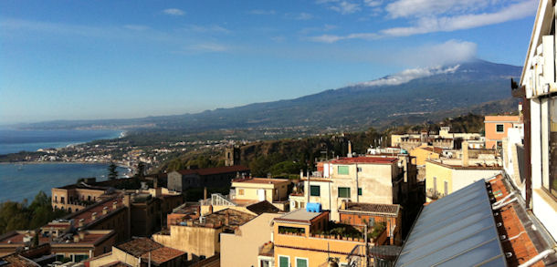 Der Ätna, der höchste aktive Vulkan Europas, aus Sicht der Stadt Taormina