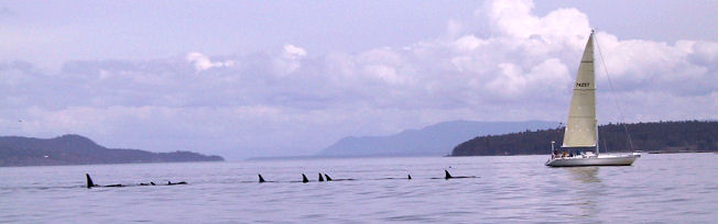 In Sidney findet man auch eine Vielzahl an Whale-whatching-Anbietern. Vor Vancouver Island leben zwei Dutzend Walarten. Manche ziehen periodisch durch, wie z.B. Grauwale, Buckelwale oder Minkwale, andere leben ständig in der Region. Wir beobachteten eine große Gruppe Orcas an der kanadisch-amerikanischen Grenze in der Strait of Georgia. Schon aus der Ferne waren die schwarzweißen Giganten an ihren unverkennbaren Rückenfinnen zu erkennen. Es ist ein unvergesslicher Anblick, wenn die schwertförmigen Rückenflossen die Wasseroberfläche durchschneiden oder wenn plötzlich ein Wal aus dem Wasser springt und mit lautem Getöse auf die Wasseroberfläche klatscht. Neben Schwertwalen sah ich noch zwei Schweinswale und mehrere Robben, die neugierig ihre Köpfe aus dem Wasser reckten.
