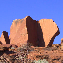 Gleich nach dem Frühstück brachen wir auf Richtung Ethosha-Nationalpark. Auf dem Weg dorthin machten wir noch einen kurzen Stopp am Vingerklip. Die einzigartige Felsformation im "Arizona von Namibia" ist der Felsabbruch eines Tafelberges und ragt wie ein erhobener Finger 35 Meter in den Himmel.