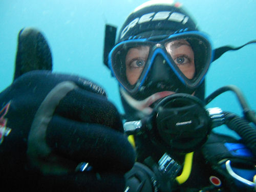 Das Schiff fährt an einem Robbenfelsen vorbei, wo ein paar Seelöwen träge in der Sonne dösen. Bald sind wir am Ende des Fjordes und sehen aufs offene Meer hinaus. Wir machen Stopp und bereiten uns auf den ersten Tauchgang vor. Die Wassertemperaturen liegen um die 10 °C und wir pellen uns in die engen 7mm Neoprenanzüge. Lieber etwas enger als zu weit, sonst gibt es zu viel Platz zwischen der Haut und dem Anzug für das kalte Wasser. Als zusätzlicher Kälteschutz dient eine Eisweste, in derselben Materialstärke. Dazu dicke Neoprenhandschuhe und Haube. Es dauert eine zeitlang bis wir alles angezogen haben.