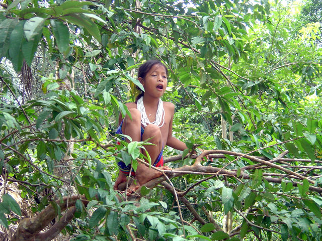 Affengebrüll hallt durch den dichten mittelamerikanischen Regenwald. Unser Kanu gleitet den grünbraunen Rio Chagres entlang, dem wichtigsten Fluss des Landes. Links und rechts am Ufer erstreckt sich undurchdringliches Urwald-Dickicht. Grün. Sattes Grün, überall wohin man schaut. Am blauen Himmel hoch über uns kreisen Truthahngeier in der Thermik. Vögel zwitschern, pfeifen, tröten, meckern in allen Tonlagen und übertönen das Geschrei der Brüllaffen. Wir befinden uns auf dem Weg zu einer Siedlung der Embera-Indianer, welche ihr Leben noch auf traditionelle Weise im Einklang mit der Natur führen.