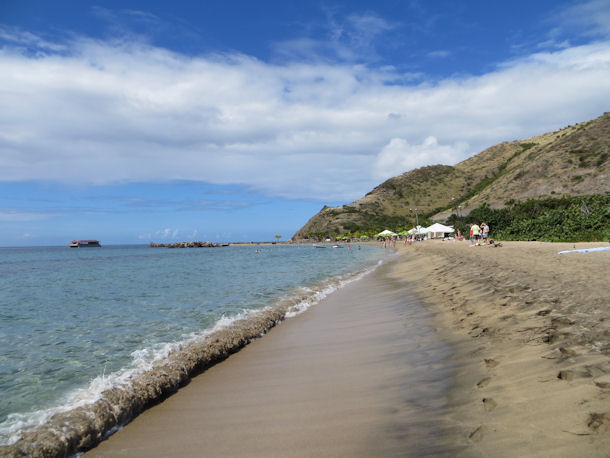 Ganz im Süden der Vulkaninsel reihen sich St.Kitts schönste Strände aneinander - Calypso Bay, Frigate Bay, South Friars Beach und White House Bay. Hier kann man ganz entspannt im Vulkansand liegen und die Sonne genießen. Einige Palmen bieten etwas Sonnenschutz. Am South Friars Beach gibt es sogar einige Strandbars, meist einfache Holzhütten.
