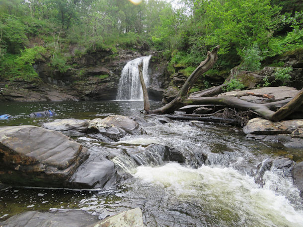 Durch den Süden der schottischen Highlands schlängelt sich der River Falloch und mündet beim Ort Ardlui in den Loch Lomond. Etwa 6 km südwestlich des Ortes Crainlarich stürzt das Wasser des Flusses in die Tiefe. Das Rauschen des Wassers ist weit zu hören. Das Wasser ist - wie überall in den Highlands - vom Torf bräunlich gefärbt. Das herabstürzende Wasser sammelt sich in einem Becken unterhalb des Wasserfalls. Dieses Becken wird auch „Rob Roy´s Badewanne“ genannt, benannt nach der berühmten schottischen Volkshelden Rob Roy MacGregor.