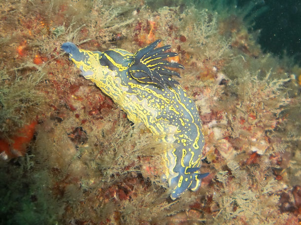 Man sollte auch immer wieder ins Freiwasser schauen, denn mit etwas Glück kann man hier sogar auf Mondfische treffen. Ein solches Glück hatte ich allerdings nicht. Lediglich eine Leuchtqualle (Pelagia noctiluca) zog vorbei.