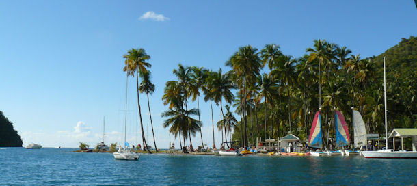 Wer nicht ausschließlich die Natur genießen will, der kann auf St. Lucia auch tolle Strände finden. Unweit der Hauptstadt Castries befindet sich die Marigot Bay. Die kleine Bucht mit ihrem palmengesäumten Strand bietet eine sichere Ankerstelle für Boote. Das Wasser ist hier sehr ruhig und deshalb bestens fürs Baden und Schnorcheln geeignet. Allerdings sollte man auf den Bootsverkehr aufpassen.