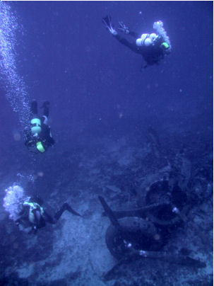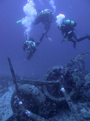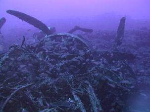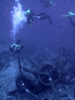 Wer hier ein komplettes Flugzeugwrack erwartet kommt ein paar Jahre zu spät. Nur noch die drei Propeller und ein paar Hydraulik-Leitungen erinnern an das Flugzeug, das Gerippe dagegen ist ziemlich verfallen und die Außenhaut fehlt komplett. Das Wrack ist jedoch schön bewachsen und man begegnet kapitalen Zackenbarschen und dösenden großen Skorpionsfischen.