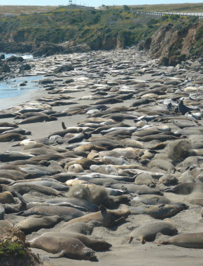 Der Pacific Coast Highway Number One, der sich die kalifornische Küste raufschlängelt, bietet eine Menge Sehenswertes. So lässt sich jedes Jahr während der Wintermonate an einem Strandabschnitt unterhalb von Monterey eine Kolonie See-Elefanten nieder.
