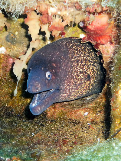 Die riesige, fast waagerechte Steuerbordseite bildet ein stählendes Plateau in 18 m Tiefe und ist auch für Tauchanfänger zu erreichen. Es ist ergreifend an einem Schiff solcher Größe zu tauchen. Ich kam mir ziemlich klein vor, als ich die Steuerbordwand erreichte. Sie ist dicht mit Algen bewachsen und nur ein paar Fenster erinnern daran, dass man nicht auf dem Meeresgrund, sondern auf einem riesigen stählenden Schiffsrumpf landet. Trotz guter Sicht ist das Wrack nie in seinen ganzen Ausmaßen zu sehen.
